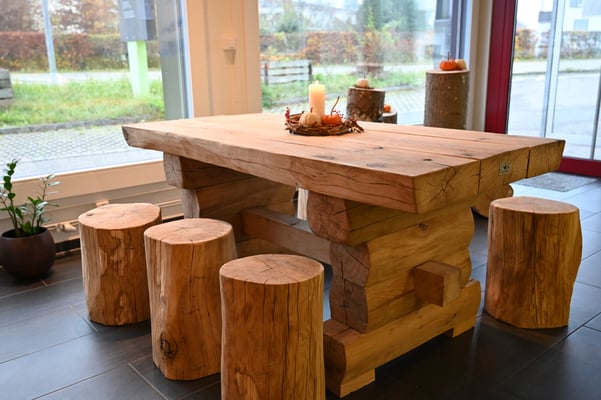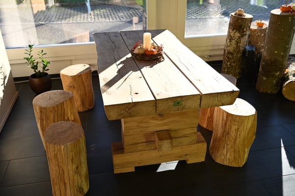Für den Naturpark Thal durften wir einen massiven Tisch mit Hocker aus Eichenholz fertigen. Die Eiche wurde im Eichholz in Laupersdorf gefällt und im Forstwerkhof verarbeitet. Kürzere Transportwege sind fast nicht mehr möglich! Wir Danken dem Naturpark Thal für den Auftrag sowie unserem Vorarbeiter Viktor für das tolle Endprodukt!