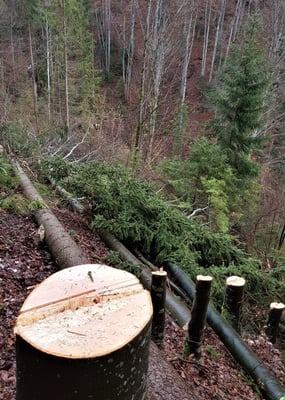 Heute sind wir wieder in die Holzernte-Saison gestartet. Um Unfälle zu vermeiden, bitten wir Sie, die Absperrungen und die Weisungen des Forstpersonals zu respektieren.