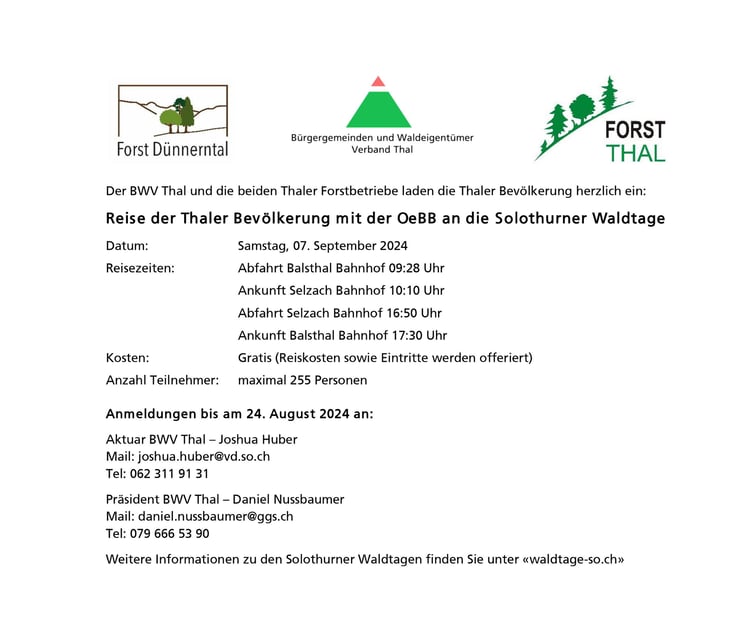 Samstag, 14. Dezember 2024, 09.30 Uhr bis 12.00 Uhr beim Waldeingang an der Schwengimattstrasse in Laupersdorf