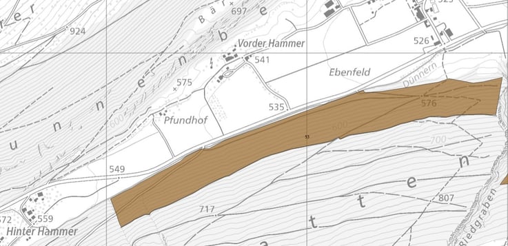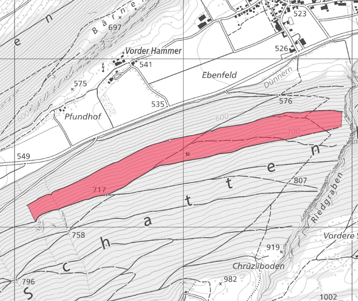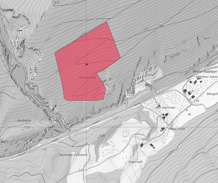 Auf den folgenden Plänen zeigen wir Ihnen, welche Bewirtschaftungseinheiten in dieser Saison durchforstet werden. Ziel der Eingriffe ist es jeweils, qualitativ gute und stabile Bäume zu fördern. Bei jedem Eingriff wird grosses Augenmerk darauf gelegt, dass möglichst viele Baumarten gefördert werden, von denen wir heute davon ausgehen, dass sie mit dem künftigen Klima besser auskommen. Denn unsere Hauptbaumarten (Buche, Fichte, Tanne) geraten mit zunehmender Klimaerwärmung immer mehr unter Druck.